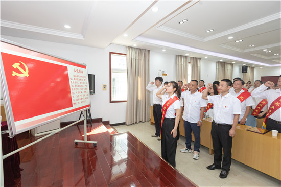 我与党旗合个影,我为党旗添光彩。会前来自6个党支部的90名党员怀着激动的心情,在党旗的见证下亮身份,展风采,庄重的在党旗前留下了别样的“全家福”。