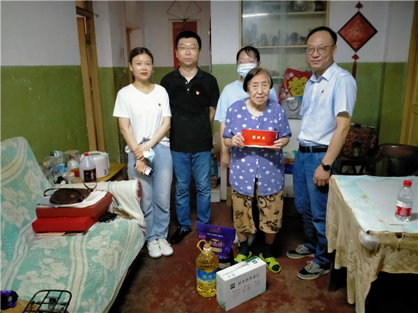 6月29日上午,华体会hth·(体育)(中国)官方网站党委副书记、纪委书记、工会主席和机关党支部代表前往同福社区看望慰问了3名困难党员,为他们送去了慰问金和慰问物资,亲切询问了困难党员的生活情况和身体状况,将党组织的关心关怀及时送到了辖区党员的心坎上。