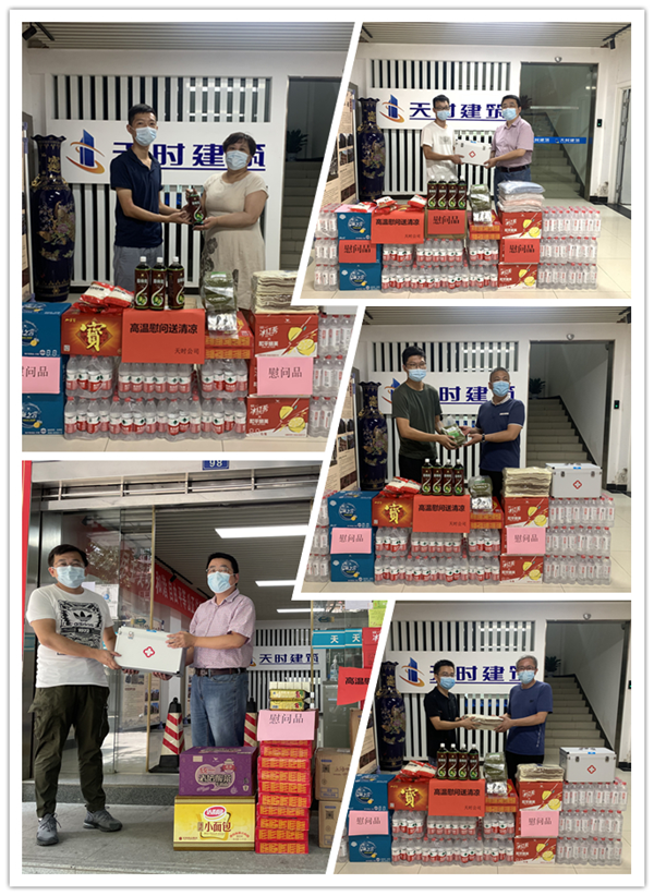 慰问现场,领导们向各项目现场负责人发放了矿泉水、绿豆、酸梅膏、毛巾、藿香正气水等消暑防暑物资,叮嘱由各项目现场负责人送到各现场工作人员手中,同时向高温下仍然奋战在一线的工作人员表达真挚的关怀,叮嘱其要切实落实好各项疫情防控和防暑降温措施,保证一线员工足够的休息和睡眠,防止疲劳作业、中暑晕厥,杜绝任何安全事故的发生,确保一线员工身体健康和施工安全。