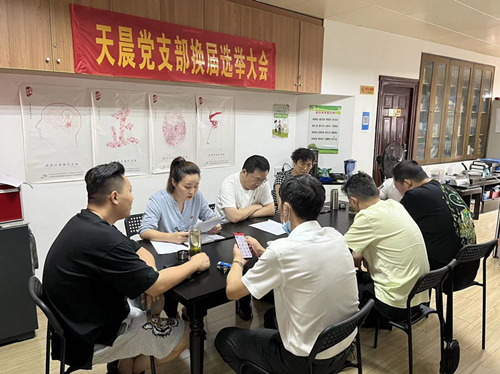 6月19日上午天晨华体会hth·(体育)(中国)官方网站党支部召开党员大会,进行支部委员换届选举工作。华体会hth·(体育)(中国)官方网站党支部共有正式党员8人,参会并有选举权和被选举权的有8人,大会由张静同志主持。